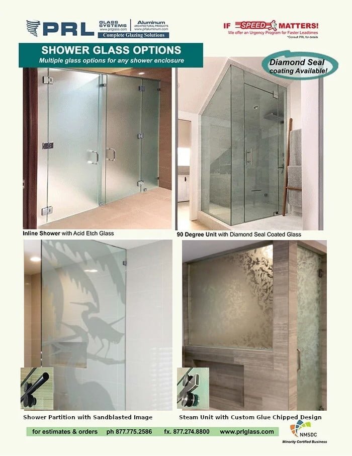Find a sweeping selection of shower glass types at PRL! Textures, patterns, borders and more, it all adds up to better with us.